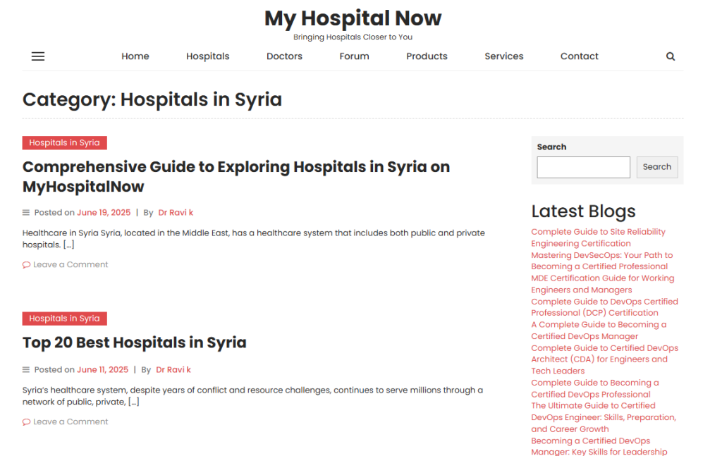 Whether you’re looking for treatment in Syria or exploring medical tourism options, MyHospitalNow is here to guide you every step of the way. Our platform offers detailed hospital comparisons, expert insights, and a thriving community where you can share experiences and ask questions.
